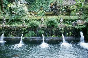 Im Zentrum des Tempels speist eine Quelle mit klarem Wassser ein Bassin, in dessen Mitte ein Altar steht. Weitere Bassins mit großen Fischen, kunstvolle Schnitzereien und Steinmetzarbeiten sind bei einem Rundgang durch die Anlage zu bewundern. Die moosüberwucherten Mauern und Figuren täuschen ein hohes Alter vor, das geht in diesem feucht-heißen Klima unglaublich schnell. Richtig alt sind aber nur einige der Steinfiguren im rechten Pavillion des Innenhofes. Viele Details, Statuen, Figuren und Einrichtungsgegenstände werden häufig erneuert, bemalt und renoviert.