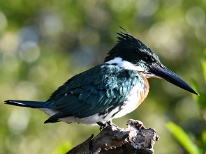 Besonders schön sind die Streifenreiher (Tigrisoma fasciatum). Dieser Vogel ist ein Lauerjäger, der von einer Ansitzwarte aus auf Beute wartet oder langsam durch seinen Lebensraum schreitet. Auf Nahrungssuche geht er gerne auch im ufernahen Flachwasser, meist in der Dämmerung oder in der Nacht. Oftmals nutzt er aus dem Wasser ragende Baumstämme, Äste, Steine, Felsen und ähnliches, um darauf stehend auf Beute zu warten. Und da er wenig schreckhaft ist und sich auf seine gute Tarnung verlässt, kann man ihn vom Boot aus schön fotografieren.