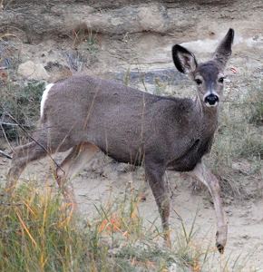 Unterwegs kann man verschiedene Tiere sehen, Maultierhirsche (Mule Deer) sind in dieser Region sehr oft anzutreffen. Wir sahen mit Fernglas sehr viele auf der anderen Flussseite und am Abend durchquerte eine Hirschmutter mit ihren beiden Jungtieren den Fluss und kann genau vor uns auf dem Pfad heraus.