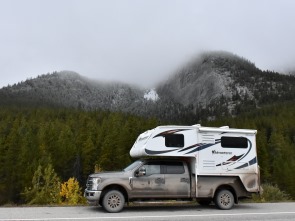 Zwischen Nordegg und dem Icefields Parkway hält der Highway 11 in Sachen Panorama locker mit dem weltberühmten Icefields Parkway mit, allerdings nur bei gutem Wetter. Wir hatten überall Wolken, wenn sich einmal kurz einer der schönen Berge zeigte haben wir gleich am Strassenrand gehalten und ein Foto gemacht, viel Verkehr herrscht hier nicht. Oft kam das leider auch nicht vor, das Wetter wurde immer mieser. Der Herbst ist hier schon zu Ende. Schnee liegt in der Luft, die Wolken hängen tief und der Wind ist frisch. Der Highway führt vorbei am Abraham Lake.