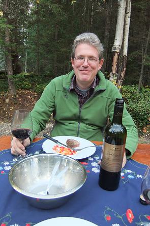 Da es immer noch sehr feucht war und von den Bäumen tropfte, fielen an diesem Abend das Sitzen im Freien und das Lagerfeuer aus.