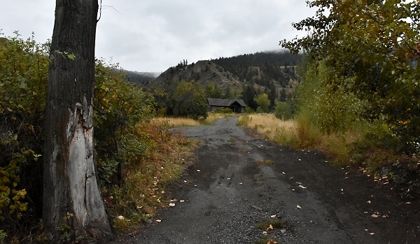 Nach 40 Kilometer Fahrt mündet die Straße auf eine weitere Schotterpiste, der Farewell Canyon Road. Der Name deutet schon auf unser heutiges Ziel hin, dem Farewell Canyon. Hier gibt es direkt am Ufer an einer Schleife des Chilcotin River ein paar verlassene Blockhäuser und man kann hier wild campen. In Kanada nennt sich das Boondocking.