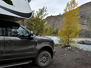 Dieser Ort ist für die First Nations seit Generationen ein wichtiger Standort für Lachsfischer. Ich hatte vorher Bilder von der Region bei schönem Wetter gesehen, dann ist es hier einfach grandios. Hier wollten wir übernachten, den türkisen Fluss genießen und am nächsten Morgen zu einer schönen Düne aus weißem Sand wandern, die nicht weit entfernt liegt.