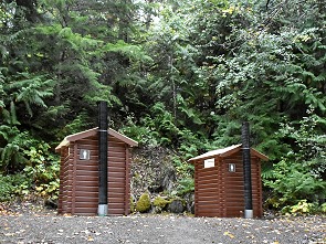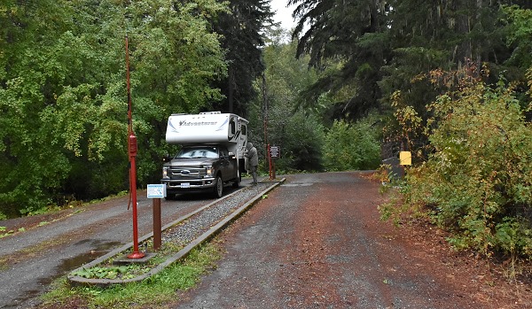 Vom Heckman Pass in Richtung Bella Coola fahrend, erreicht man zuerst einen Campingplatz namens Atnarko Campground. Er befindet sich im Tweedsmuir South Provinicial Park und war in der Nebensaison im September schon geschlossen. Daneben befindet sich die einzige Dumpingststion für Wohnmobile im Tal, hier zahlt man 5 Dollar in Münzen für ein Self-Service-Ticket. In einigen Jahren wird hier wohl eine elektrisch verriegelte Klappe im Boden mit Münzeinwurf am Automaten zu öffnen sein.