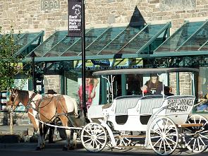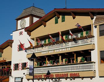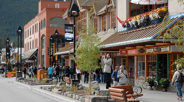 Später waren wir noch einmal in Banff, da hatten wir herausgefunden, dass alle Supermärkte im Zentrum liegen. Um sie zu erreichen muss man seinen Camper auf einem der drei RV-Parkplätze abstellen und die Einkäufe dann zu Fuß erledigen. Die meisten Geschäfte in Banff liegen entlang der breiten Banff Avenue, sie sind recht teuer und bieten zum Teil viel Kitsch und Touristenkrempel. Mützen in Tierform, Indianer-"handarbeiten" und vor allem teure Outdoorbekleidung findet man hier überall. Dazu kann man teuren Schmuck und exklusive Mode kaufen und in zahlreichen Bisros und Restaurants essen gehen. Egal, was man hier in der Hand hat, ob Plüschbär oder Felljacke mit Wölfen drauf: fast alles ist "Made in China". Die Architektur erinnert oft an die Alpen und die offiziellen Hefte enthalten mehr Werbung als Information. Höhepunkt für uns war ein Griechisches Restaurant im Zenrum, das mit Bauchtanz und "plate smashing" warb, blöder gehts nimmer...