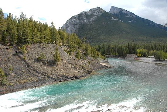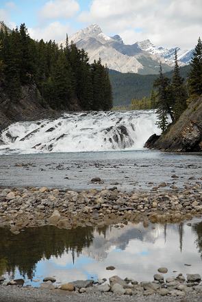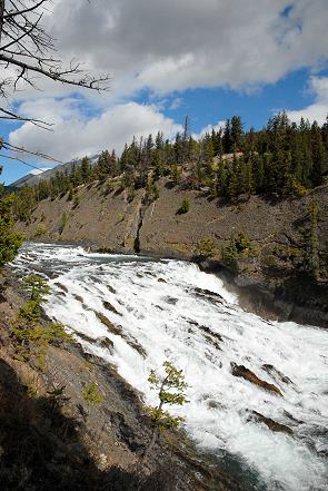 Was die Massen am Wasserfall machen bleibt auch eher ein Räsel, denn es gibt wesentlich schönere Wasserfälle in der Umgebung. Dieser hier ist nur 9,1 Meter hoch und 30 Meter breit. Der Bow River vereinigt sich wenige hundert Meter später mit dem Spray River. Immerhin hat Marilyn Monroe hier im Jahr 1953 den Film River of No Return gedreht.