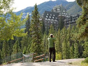 Über eine Brücke jenseits des Zentrums, die den Bow River überspannt, gelangt man zu einigen Sehenswürdigkeiten von Banff. Ein echter Blickfang ist das berühmte Fairmont Banff Springs Hotel, ein mit Türmchen besetztes, massiges Schloss. Wer viel Geld für sehr kleine Zimmer ausgeben möchte, der ist hier genau richtig. Bei seiner Eröffnung im Jahr 1888 war das heutige 770-Zimmer-Monster mit 250 Zimmern sogar das größte Hotel der Welt. Die reiselustige Oberschicht gab sich hier einst ein Stelldichein, um die Natur im Schutz eines luxuriösen Ambientes zu erleben. Sogar die heißen Quellen leitete man über Rohre von den 2 Kilometer entfernten Upper Hot Springs ins Haus. Ähnliche historische Klötze wurden am Lake Louise und am Waterton Lake erbaut.