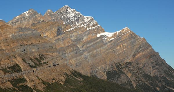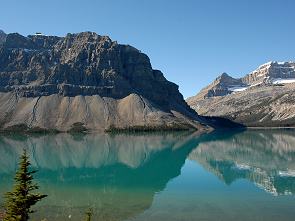 Wenn man am frühen Morgen in Lake Louise in Richtung Jasper startet, dann kommt man gleich an einigen Seen vorbei. Der Hektor Lake zum Beispiel ist nicht besonders aufregend und eher für ein Sommerpicknick geeignet. Aber einen der ersten landschaftlichen Höhepunkte am Icefields Parkway erreicht man schon nach 32 Kilometern Fahrt. Hier befindet sich der Crowfoot Gletscher, was auf Deutsch Krähenfuß-Gletscher bedeutet.