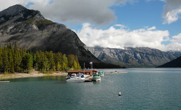 Nach kurzer Fahrt von ca. 6 Kilometern Länge erreichten wir dann die Ufer des Lake Minnewanka. Der schöne Gletschersee liegt im östlichen Bereich des Banff National Park, nur ca. fünf Kilometer nordöstlich vom Ortszentrum Banff entfernt und ist mit 28 Kilometern Länge 142 Metern Tiefe der längste und zweittiefste See in den Parks der kanadischen Rocky Mountains. Ein Damm westlichen Ende staut hier das Wasser zusätzlich etwas auf, er wurde zwischen 1912 und 1941 gebaut, um die Stadt Banff mit Strom aus Wasserkraft zu versorgen.