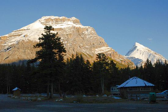 Den Sonnenschein erlebten wir dann schon im Yoho National Park und voller Vorfreude fuhren wir über Lake Louise zum Mosquito Creek Campground. Dieser liegt nur ca. 30 Kilometer hinter dem Ort im Nationalpark und war Mitte September neben dem Rampart Creek Campground nördlich von Sascatchewan Crossing als einziger Platz noch geöffnet. Es gab allerdings kein Wasser mehr, weil es über Nacht in den Rohren einfriert und so Schäden anrichtet.