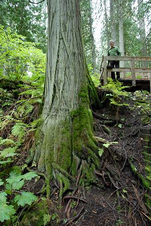 Die einst ausgedehnten Wälder des Innern von British Columbia bilden den weltweit einzigen im Binnenland gelegenen gemäßigten Regenwald. Der Holzplankenweg führt einen halben Kilometer lang durch diesen mit Moos bewachsenen Regenwald mit 800 Jahre alten roten Zedern. Tiere wie Vögel hört man eher, als dass man sie im dichten Laub hoch über den Köpfen sehen kann. Eine reiche Vielfalt an Farnen und Moosen bilden Teppiche dem Waldboden. Der Bach, der den Wald durchquert, ist eine wichtige Tränke für viele Fledermausarten.