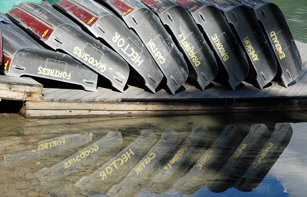 Hier paddelten keine johlenden Reisegruppen umher wie auf dem Lake Louise. Insgesamt waren 4-5 Kanus auf dem Wasser und man kam sich gar nicht in die Quere. Die Fortbewegung ging einfacher als gedacht, man glitt über das spiegelglatte Wasser und hatte schnell einen gemeinsamen Rhythmus gefunden.