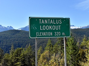 Leider hatten wir keine Zeit mehr um einen der Provincial Parks an der Strecke zu besuchen, wie den Brandyvine Falls PP oder den Alice Lake PP. Unterwegs genossen wir das wunderbare Wetter, dies war erst der zweite wolkenlose Tag mit Sonnenschein in drei-einhalb Wochen. Am Tantalus Lookout auf 320 Mtern Höhe machten wir eine kurze Pause, um die schneebedeckten Berge mit blauem Himmel darüber zu bewundern. Schautafeln informieren hier über die Geschichte der Squamish, eine der kanadischen First Nations im Südwesten der Provinz British Columbia.