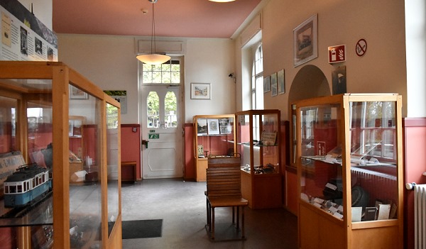 Direkt an der Bergbahn-Station gibt es einen Kiosk, an einem Gebäude wurde gerade renoviert und es war eingerüstet. Wenn man nach rechts um die Ecke geht, dann kann man einen Blick in den Maschinenraum der historischen Bergbahn werfen. Unten im eigenen Video zu sehen. Oder man kann den Ausstellungsraum mit spannenden Zeugnissen der Geschichte der Heidelberger Straßen- und Bergbahnen im Abfahrtsbereich besichtigen.