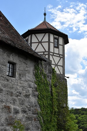 So genossen wir die Aussicht, unseren mitgebrachten Snack und schauten uns den Burghof an. Der Eckturm der Burg ist mit einem Fachwerkaufsatz versehen, ein Bergfried war hier nie vorhanden.
