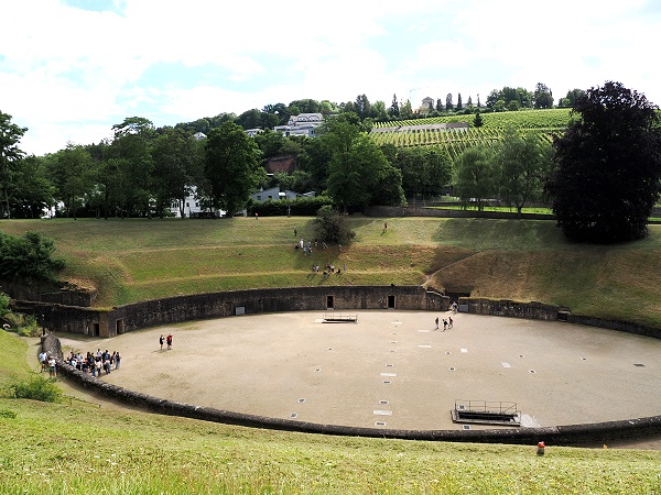 Das Amphitheater wurde um das Jahr 100 n. Chr. erbaut und zählt damit zu den ältesten noch sichtbaren römischen Spuren in Trier. Es gilt immerhin als das zehntgrößte aller Amphitheater der römischen Epoche. Praktischerweise hat man eine Seite der Arena direkt in die alte Stadtmauer integriert, damit konnte schätzungsweise ein Viertel des Aufwands gespart werden. Die ersten Grabungen am Arenabau begannen im 19. Jhd. und um 1908 wurde der Arenakeller freigelegt.