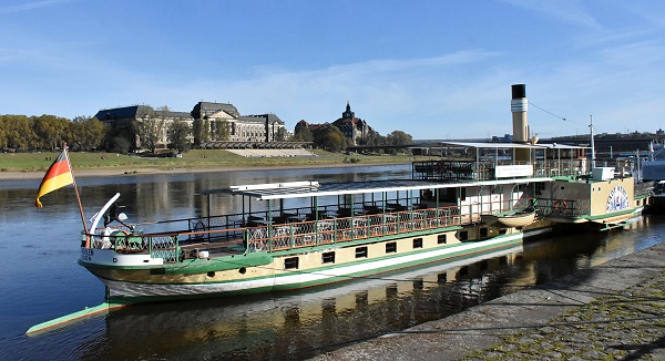 Nach unserer Ankunft war es in der Stadt noch ziemlich ruhig, so spazierten wir am Elbufer entlang und bewunderten die dort festgemachten Schaufelraddampfer der Weißen Flotte.