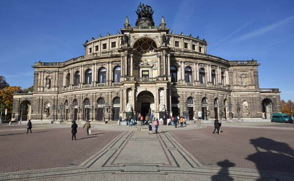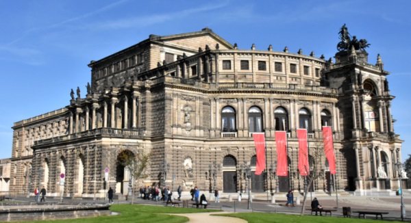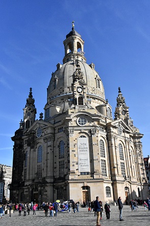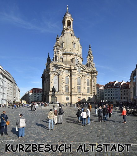 Ein Wahrzeichen der Stadt ist die Frauenkirche. Nach der Zerstörung Dresdens am 13./14. Februar 1945 standen nur zwei Seitenmauern um ihren Trümmerberg. Lange war sie Mahnmal des Krieges mit alljährlichem Gedenken an den 13. Februar 1945, seit dem 2005 beendeten Wiederaufbau wird sie von vielen Menschen besucht. Die Schlange war so lang, hier hätten wir Stunden gewartet. So haben wir sie leider nur von außen gesehen und der Gesangskunst der beiden hervorragenden Opernsänger auf dem Neumarkt mit seiner Martin-Luther Statue gelauscht.