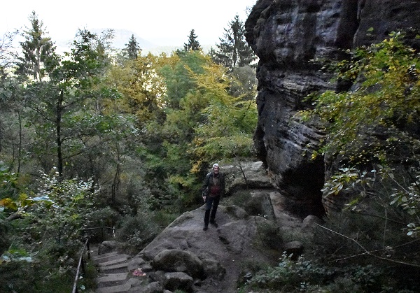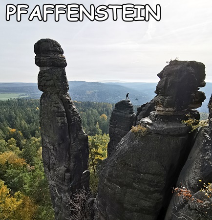 Schon seit dem 19. Jahrhundert wird der Pfaffenstein für touristische Zwecke genutzt und das merkt man auch. Selbst an einem Wochentag war hier viel los, aber es waren ja auch Herbstferien und so waren viele Familien mit Kindern vor Ort. Der zerklüftete und von zahlreichen Höhlen durchzogene Berg diente zu Zeiten des Krieges oft als Zufluchtsort für Einheimischen.