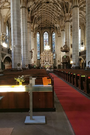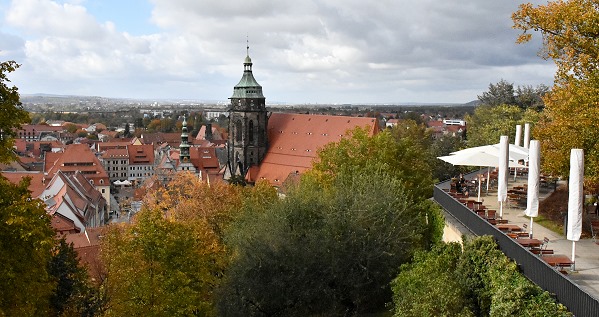 Wir schlenderten ein bisschen durch die Einkaufstrassen von Pirna. Die spätgotische dreischiffige Hallenkirche St. Marien beherrscht das Stadtbiuld, sie wurde zwischen 1502 und 1546 errichtet. Das Dach hat bei einer Firsthöhe von 40 Metern und einer Dachstuhlhöhe von 25 Metern, die größte Kirchendachfläche Sachsens und es wurde im Jahr 2004 erneuert. Der Turm der Kirche ist 60 Meter hoch.