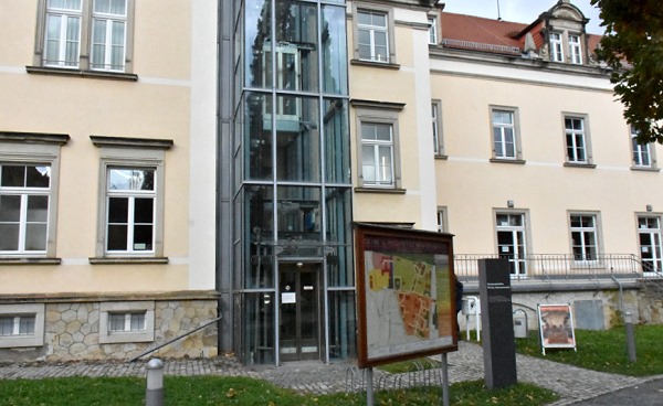 Hinter dem Schloss führt ein Weg vorbei am Amtsgericht und an der ehemaligen Anstaltskirche zur früheren Heilanstalt, ein Ort, der einem heute noch eine Gänsehaut beschert, wenn man daran denkt was hier geschah.