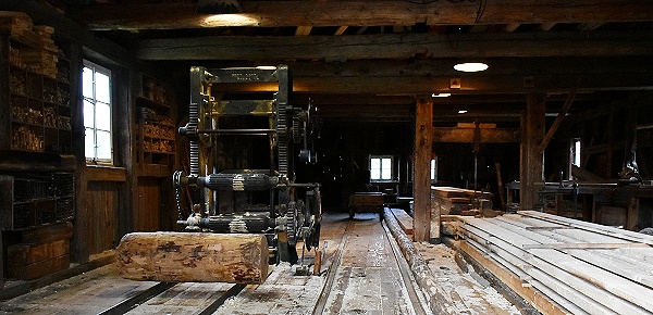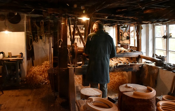 Die Anlagen hier im Freilichtmuseum sowie der Ausführungsort sind dabei so authentisch wie möglich gehalten. Die letzte noch originale Wasserkraftanlage mit angebundener Werkstatt wurde von Johann Heinrich Frohs von 1758 bis 1760 erbaut. 1951 stellte man es bereits unter Denkmalschutz. Damals befanden sich im niedrigen Arbeitsraum oberhalb der Radstube drei Reifendrehbänke und vier Drechselbänke.