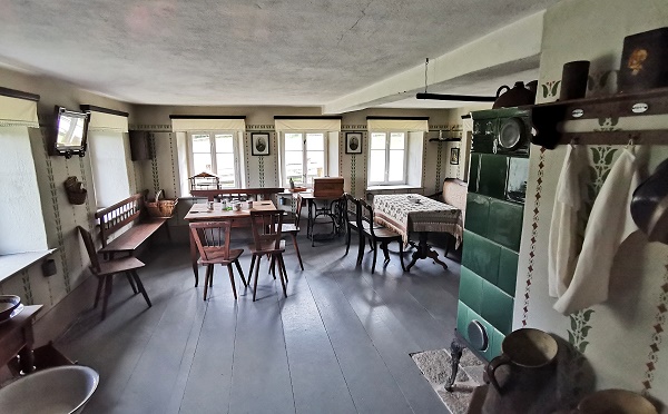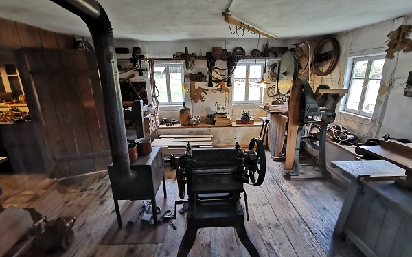 Im Waldarbeiterwohnhaus gibt es eine Schwarze Küche, daneben ein Lager mit Werkzeugen und Werkstücken der früher üblichen Wasserleitungen aus längs durchbohrten dünnen Baumstämmen. Diese Wassereleitungen erforderten jedes Jahr wieder Pflege und Reparaturen. Es folgen in Doppelwohnhaus mit gleichen Hälften und ein Wasserkraftsägewerk.