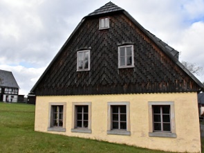 Hinter dem Eingang beginnt man mit einem Bergmannswohnhaus und einem Flößerwohnhaus.