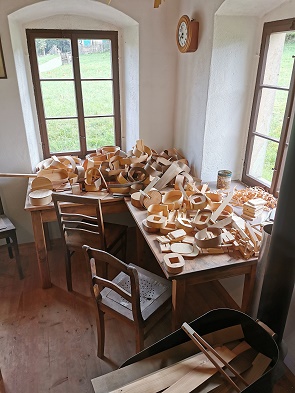 Wir hatten Glück und konnten in der Drehstube des Wasserkraft-Drehwerkes einem Reifendreher dabei zusehen, wie hier kleine Reifentiere entstehen. Er macht zwischen 12:00 Uhr und 13:00 Uhr Mittagspause, die hier hergestellten Tiere kann man im Shop am Eingang auch kaufen. Übrigens: Diese Reifen haben nichts mit Autoreifen zu tun.