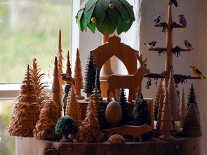 Dann folgt das Highlicht Wasserkraftdrehwerk und eine alte Umspannstation, schlank und in Fachwerkdesign. Sie zeugt von den vielfältigen Veränderungen, die sich mit der Elektroenergie in den folgenden Jahrzehnten in der Hausstruktur und in der Lebensweise der Erzgebirgler vollzogen. Daneben liegt das Spielmacherhaus mit zahlreichen Holzfiguren und Werkstatt der Seiffener Spielwarenhersteller Max und Otto Walther. Sie arbeiteten noch bis in die 1970er Jahre hinein in althergebrachter Weise.
