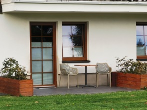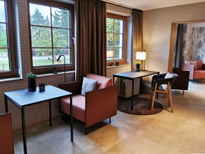 Das Hotel hat 48 Zimmer und zwei Suiten und der Empfang war freundlich. Wir hatten eines der renovierten Doppelzimmer mit Terrasse gebucht, jetzt im Herbst hatten wir leider nicht all zu viel von der Möblierung vor unserem Zimmer, denn die Temperaturen luden nicht zum Sitzen im Freien ein. Diese Zimmerkategorie liegt im rechten Seitenflügel ebenerdig. Obwohl im Wintergarten eine grössere Feier stattfand, haben wir dort kaum etwas davon mitbekommen und es war wunderbar ruhig.