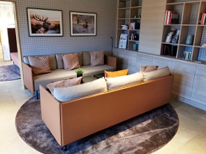 Neben der Rezeption gibt es eine gemütlich eingerichtete Lounge. Wellnessfreunde finden einen schönen Bereich zur Nutzung mit verschiedenen Saunen, 200 qm Erholung pur, die wir aber nicht genutzt haben. Ayurvedische Massagen und kosmetische Anwendungen sind auch im Angebot.