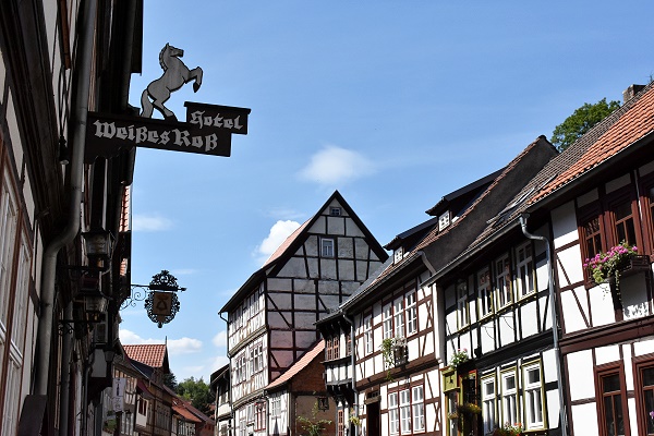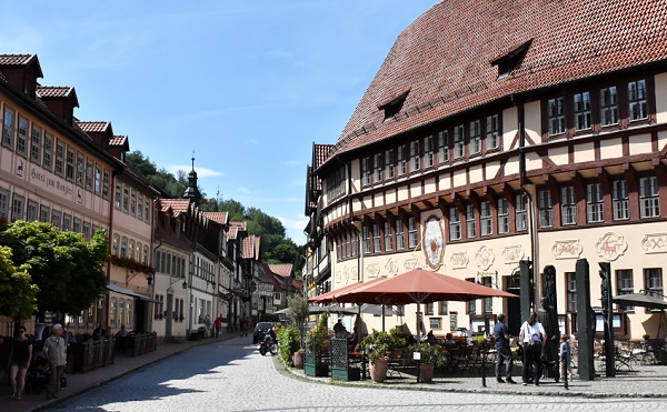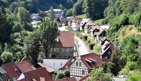 Nach dem Besuch am Josephskreuz, dem größte eisernen Doppelkreuz der Welt mit schöner Ausicht über die Umgebung, kamen wir nach knapp 10 Kilometer Fahrt in Stolberg an. Der etwa 1.400 Einwohner zählende Ort im Harz besaß bis zu seiner Eingemeindung 2010 seit dem Jahr 1300 das Stadtrecht und ist seit 1946 bekannt als Luftkurort. Markenzeichen im Ortsbild sind die vielen Fachwerkhäuser im Renaissancestil.
