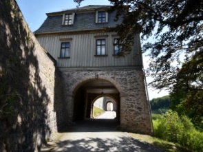 Vom Ort aus ist es teilweise gar nicht zu sehen, hoch oben auf einem Hügel über der Stadt zwischen dem Ludetal und dem Kalten Tal thront Schloss Stollberg. Der Aufstieg ist steil, aber wir wollten von oben die Aussicht auf den Ort genießen. So machten wir uns auf den Weg. Sehenswert ist dieses Schloss, es steht auf einem nach drei Seiten abfallenden Berg. Aber als wir oben ankamen waren große Teile eingerüstet und überall fanden Bauarbeiten statt.
