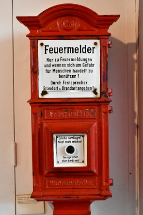 Die Meilensteine der Motorisierung der Feuerwehren bis hinein in die 1960er findet man dann in der beeindruckenden Halle 2. An der Wand einige hübsche alte Feuermelder.