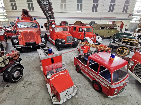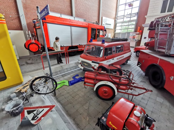 Natürlich kommt auch die Entwicklung der Technik nicht zu kurz und damit ihre herausragenden Produzenten. Mit Organisationstalent und Erfindergeist setzten Männer wie Carl Metz oder Conrad Dietrich Magirus Impulse für die Entwicklung des Feuerwehrwesens. Einige Entwicklungen sind sehr überraschend: Die Offenbacher Feuerwehr hatte von 1903 bis 1927 eine selbstfahrende Drehleiter mit Batteriespeicher und Elektromotoren als Antrieb im Einsatz. Auch die Synagogenbrände im November 1938 und die Ausgrenzung verdienter jüdischer Feuerwehrkameraden sind ein Thema. In der Halle ist eine Gedenkstädte wie ein kleines Wohnhaus nachgebaut.