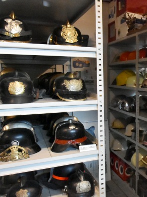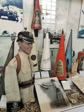 Es gibt unter anderem Informationen zum KFZ Brief und über die Folgen des 2. Weltkriegs. Neben Autos und Gerätschaften der Feuerwehr findet man auch einiges zum Zeitgeist in der Ausstellung. So sieht man hinter Glas ein komplett eingerichtetes Wohnzimmer aus den 50er Jahren, ein Jugendzimmer aus den 70errn und in der Ausstellung stehen eine Telfonzelle, ein Münchner Hydrant oder der empfohlenen Notvorrat für Katastophenfälle. Sehr interessant für jeden Einzelnen ist hier die mit vielen Exponaten gezeichte Entwicklungsgeschichte der Hand-Feuerlöscher.