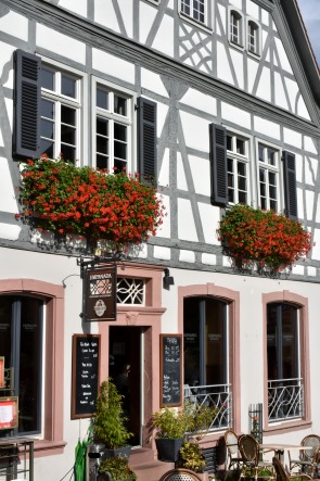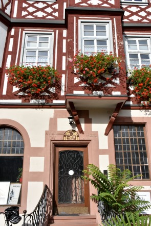 Das Stadtgebiet liegt unterhalb des Schlossbergs mit Weinreben und der mittelalterlichen Starkenburg, für einen Aufstieg hinauf und einen Blick von oben hatten wir leider zu wenig Zeit. In den Jahren 1369 und 1693 wurde Heppenheim durch Stadtbrände fast völlig zerstört. Die beiden Weltkriege überstand die Stadt bis auf geringe Schäden beim Einmarsch der Amerikaner im März 1945 weitgehend unversehrt.