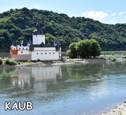 Die kleine Stadt Kaub liegt am rechten Rheinufer bei bei Stromkilometer 546 im Rhein-Lahn-Kreis. Sie gehört der Verbandsgemeinde Loreley an, die ihren Verwaltungssitz in St. Goarshausen hat und ist mit knapp 1.000 Einwohnern die kleinste Stadt in Rheinland-Pfalz.