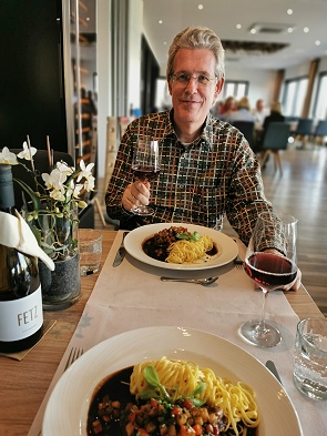 Oben am Ortsrand von Dörschied sind wir gerne zu Gast im Hotel und Restaurant Fetz, das Loreleyhotel. Hier wurde in den letzten Jahren viel investiert und es gibt ein sehr gutes Restaurant mit Panoramafenstern und schöner Aussichtsterrasse. Bei schönem Wetter sollte man vorbuchen, denn das Restaurant ist sehr beliebt.