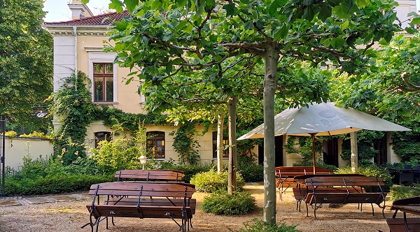 Leider haben wir hier im Restaurant am Abend nicht gegessen und nur die Bar genutzt. Eigentlich wollten wir am ersten Abend zu einem indischen Restaurant, aber nach einem langen laufintensiven Tag in der Natur taten uns doch sehr die Füße weh. So schauten wir auf der Karte nach dem nächstgelegenen Restaurant und kamen so auf einen Tschechen mit dem lustigen Namen Zum gebratenen Storch, direkt am Naturschutz-Tierpark Görlitz und nur 9 Minuten Fußweg vom Hotel entfernt. Das Alleinstellungsmerkmal des Restaurants ist das Zebramangusten-Gehege des Tierparks, dass direkt in den Biergarten integriert ist.