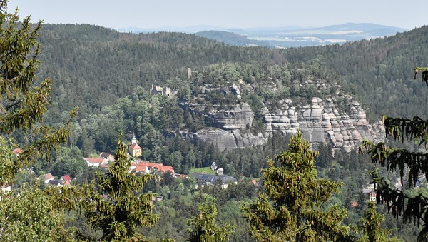 Geht man den Weg weiter, kommt man zur Felsformation Taube und hat danach einen schönen Blick auf Oybin und den Berg mit Burg und Kloster. Bis zum Aussichtspunkt mit der Edmundshütte sind wir nicht mehr gelaufen, der Weg führt dann noch weiter über die Oskarhöhe nach Lückendorf. Wir sind aber wieder zurück zum Auto gelaufen.