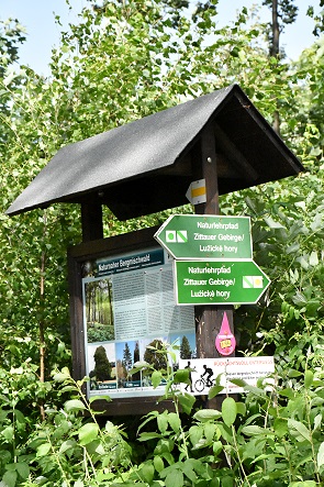 Wir fanden einen Parkplatz an der Kammstraße am Aussichtspunkt Sudetenblick noch kurz vor dem Luftkurort Lückendorf. Er liegt in einer Höhenlage von 450 bis 550 m als einziger Ort auf der sonnigen Südseite des Zittauer Gebirges. Die Berge Hochwald, Brandberg, Scharfenstein und Heideberg umgeben das Dorf, bieten Schutz vor kaltem Wind aus Nordwest und tragen so zum milden Klima bei.