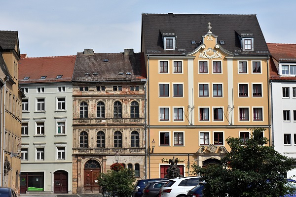 Die Geschichte der Stadtapotheke geht bis in das Jahr 1519 zurück. Das mit wertvollen Erkern versehene Haus wurde im Jahr 1707 erbaut und nach dem Stadtbrand von 1757 wieder aufgebaut. Direkt nebenan ein weiterer prächtiger Barockbau von 1710, ehemals der Gasthof "Zur Goldenen Sonne". Hinter dem wertvollem Sandsteinportal gab es einst das vornehmste Hotel der Stadt. Die Fürstenherberge am Markt 13 war ebenfalls ein Hotel, im Jahr 1767 im Rokokostil erbaut. Hier quartierte der Rat der Stadt stets seine höchsten Gäste ein, so wie im August 1813 Kaiser Napoleon I. vor der Völkerschlacht zu Leipzig. An der Westseite des Marktplatzes erhebt sich das alte Amtsgericht.