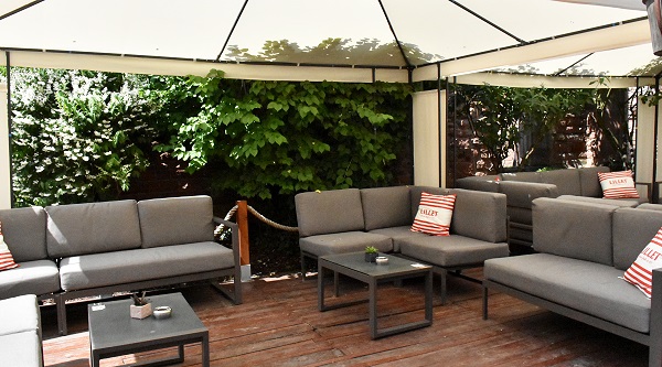 Pünktlich um 12:00 Uhr waren wir vor Ort, es war an diesem Wochentag nicht viel los. So fanden wir einen schönen Platz im Schatten. Der schöne Innenhof war mit Pflanzen und gemütlicher Lounge-Ecke ausgestattet, rundum ist man hier von den alten Klostermauern umgeben. Ein schöner Platz, es hat usn sehr gut hier gefallen.