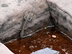 Viele Eidechsen huschten auf den Steinen umher. An der tiefsten Stelle des Burgareals kann man noch Reste von Höhlen sehen, die damals als Keller in den Bau integriert waren und heute nach oben offen sind, ebenso wie die künstlichen Keller unter dem Langhaus. Die Umgebung ist sehr grün und es gibt viele Fotomotive, es war auch nicht sehr voll an diesem Tag.
