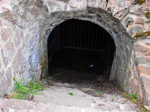 Heute führt ein neuer Eisensteg über den Burggraben zum Eingang durch ein etwa vier Meter hohes Rundbogentor das sich in der bewohnten Zeit der Burg genau hier befunden hatte. Das war vor der Sanierung noch nicht da, denn es wurde es aus Überresten wieder aufgebaut.