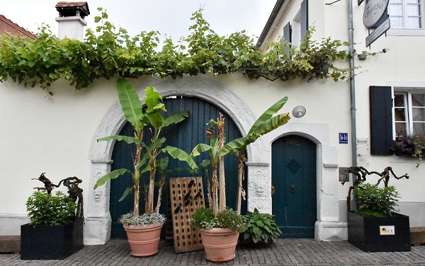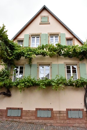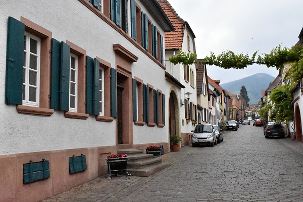 Der obere Teil der Straße ist als Allee mit alten Kastanienbäumen angelegt, das muss im Herbst sehr schön aussehen wenn sich die Blätter färben. Einige Häuser haben Walm- oder Krüppelwalmdächern. Hübsch sind auch die Weinreben, die hier überall Häuser zieren und die quer auf Bögen über der Straße wachsen.