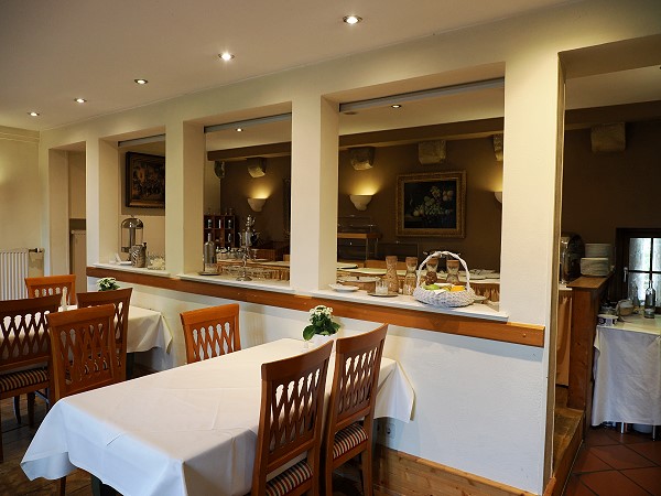Wir hatten hier das Arrangement namens "Romantische Ausszeit" direkt über die Webseite gebucht, buchbar ist es nur bei Anreise vom Sonntag bis Donnerstag. Neben Übernachtung, Frühstücksbuffet sowie der Nutzung der hauseigenen Sauna ist am Abend ein 4-Gang-Gourmet-Menu enthalten. Das wird normalerweise im Restaurant mit schönem Kamin eingenommen. Im Raum ist aber auf Grund der Bauweise das Sitzplatzangebot begrenzt. Wer hier als Hausgast essen möchte, der sollte auf jeden Fall vorab einen Tisch reservieren.