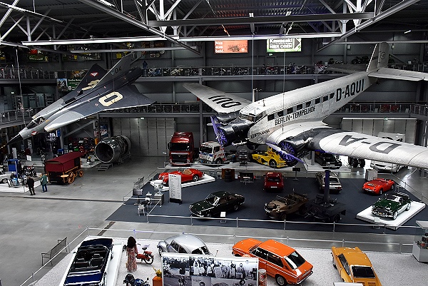 Es gibt auch einige schöne Oldtimer, Motorräder und Flugzeuge in der Halle 2, die passend zur Zeit dekoriert sind. Puppen mit enttsprechender Kleidung stehen hier neben funkelndem Chrom und Lack. Es gibt auch einen auffällig geformten LKW, den einst der Designer Colani entworfen hat. Unten auf einem Foto ist er zu sehen.